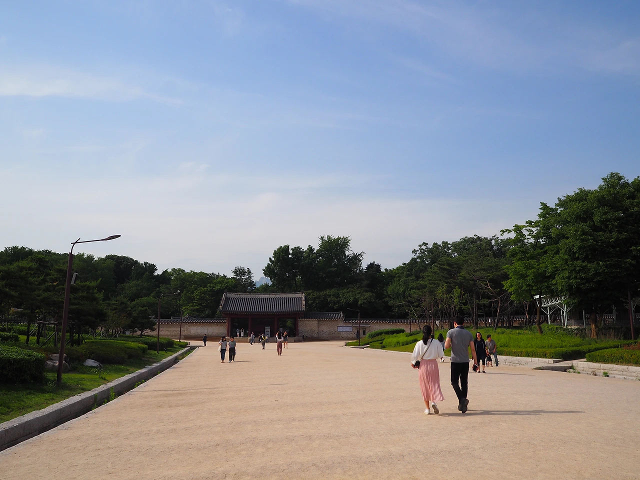 종로에 온 김에 박물관은 포기하고 광화문까지 산책해서 경복궁역 근처에서 먹태에 맥주를 먹자고 제안했다. 여행 흥에 취한 두 사람은 그렇게 시작한 줄도 몰랐던 하루짜리 서울 여행을 했다. 종로5가역에서 광화문역 방향으로 걷다 보니 갑자기 오른쪽에 마사토가 깔린 널따란 길과 한옥 궁궐의 담장이 보였다. 갔는지 안 갔는지조차 기억이 나질 않는 종묘다. 내친김에 들어가 보기로 했다.