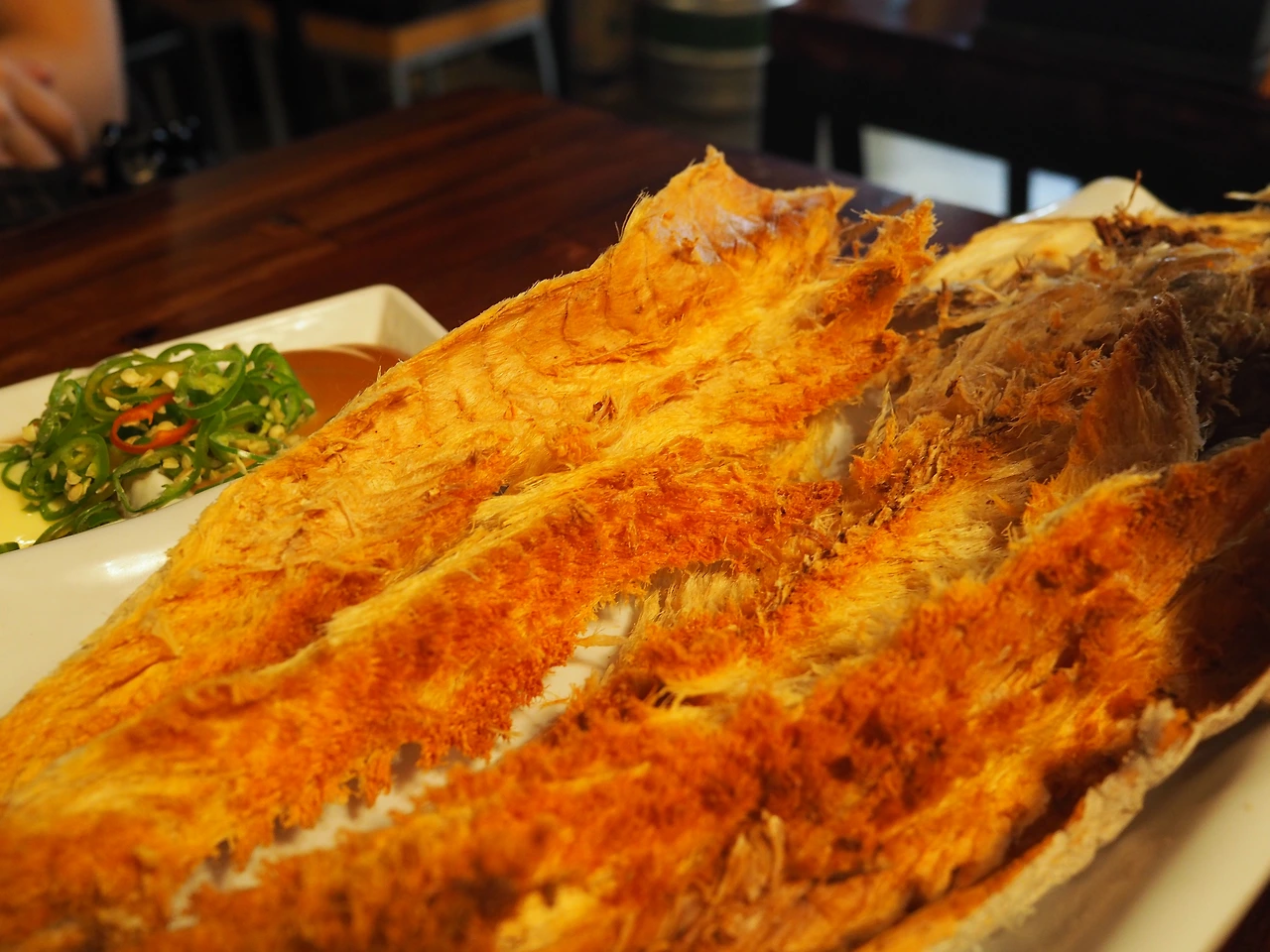 물로 목을 축였지만 임시방편일 뿐이다. 맥주가 눈 앞에 어른거려 서둘러 경복궁 돌담길을 따라 걸었다. 먹태를 알게 된 것은 몇 년 전이다. 친구를 따라 이주당에 왔다가 처음 맛을 보게 되었고, 이후로도 광화문을 오게 될 일이 있으면 늘 들러 맥주를 곁들여 먹은 것이다. 코젤 다크에 시나몬을 두르고 뿌려 마신다는 것도 이 곳에서 처음 알았다. 먹태는 껍질이 거무스름하다고 해서 붙은 이름이다. 황태를 만들다가 겨울 날씨가 포근해서 바짝 얼지 못해 껍질 색이 변하고 살이 부드러워진 것이다. 이주당에서는 안주로 제격이라고 해서 주당태라고 부른다.