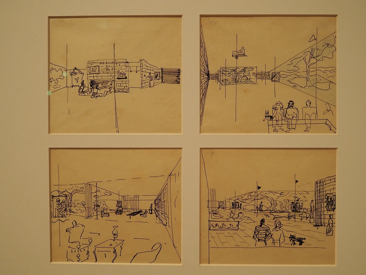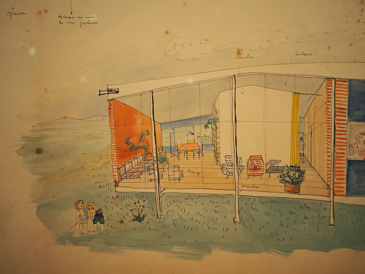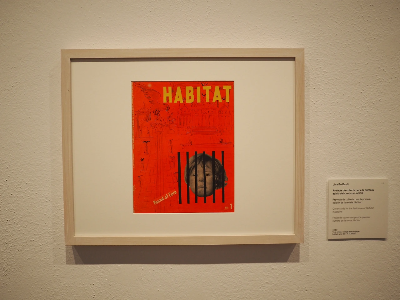 리나 보 바르디는 건축물 설계와 전시공간 계획과 시각디자인 작업을 겸했다. 잡지 ‘해비타트(Habitat)’의 창간호의 목업 디자인이 전시되어 있다. 건축가의 작업을 소개한 영상에는 기다란 봉마다 작품을 걸어놓거나, 유리판 사이에 작품을 끼우고 아래서 콘크리트로 고정하는 등 당시에 파격적이었을 현대적인 큐레이팅을 볼 수 있다. 영상을 보고 나서야 이 건축가의 스케치를 전시한 방식을 이해할 수 있었다.
