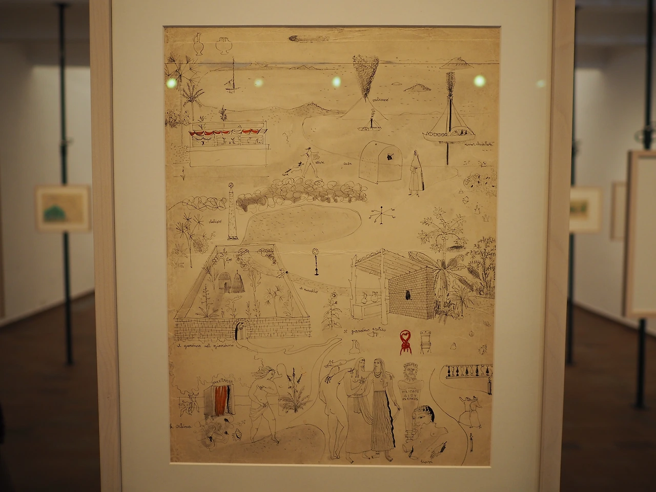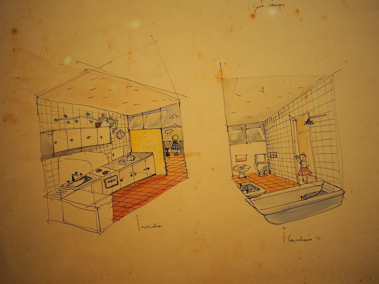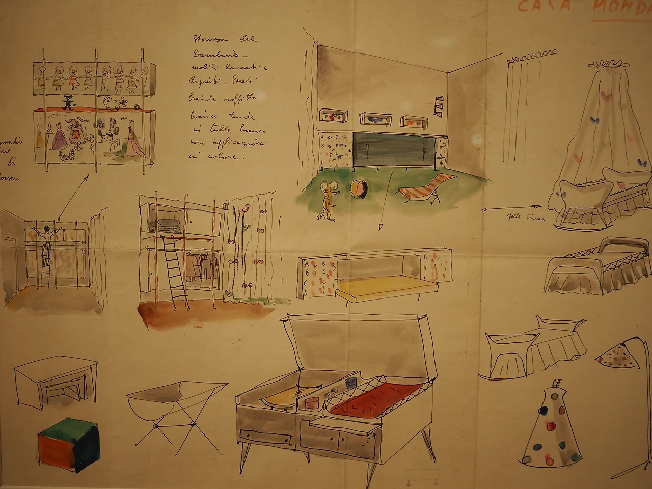 리나 보 바르디는 건축물 설계와 전시공간 계획과 시각디자인 작업을 겸했다. 잡지 ‘해비타트(Habitat)’의 창간호의 목업 디자인이 전시되어 있다. 건축가의 작업을 소개한 영상에는 기다란 봉마다 작품을 걸어놓거나, 유리판 사이에 작품을 끼우고 아래서 콘크리트로 고정하는 등 당시에 파격적이었을 현대적인 큐레이팅을 볼 수 있다. 영상을 보고 나서야 이 건축가의 스케치를 전시한 방식을 이해할 수 있었다.
