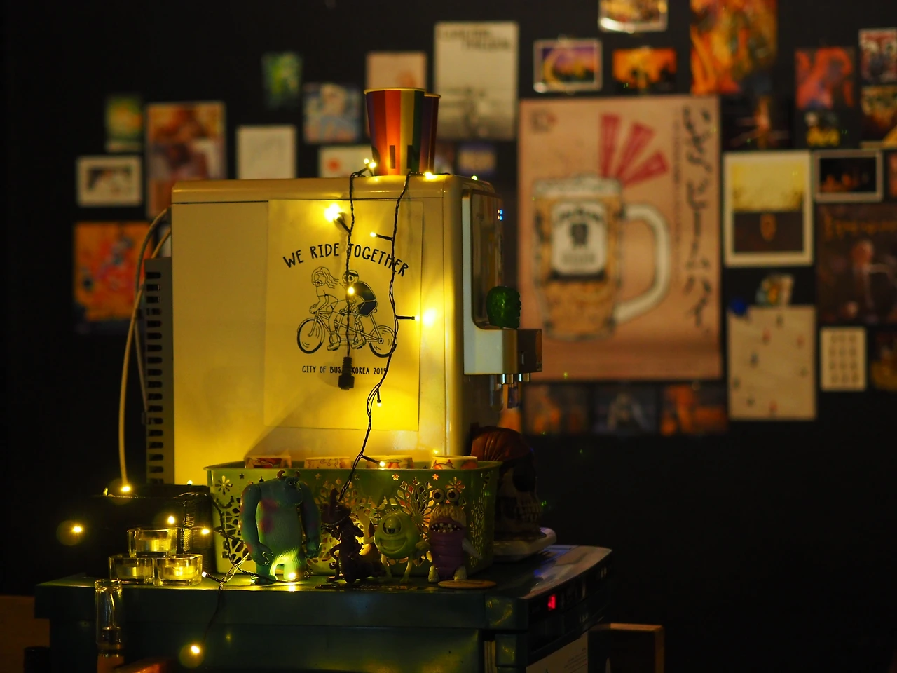 몬스터박스는 맨 마지막에 해당하는 술집이다. 2015년에 오픈한 이 가게는 원래 세 명의 작가가 함께 시작했지만, 지금은 윤 작가가 혼자 운영하고 있다. 원래는 간판 없이 ‘몬스터’주식회사의 샐리가 플라스틱 맥주 ‘박스’에 매달려 간판 자리에 붙어있었는데, 올해 초 무슨 일인지 태풍에도 무사했던 샐리가 떨어져버렸다고 한다.