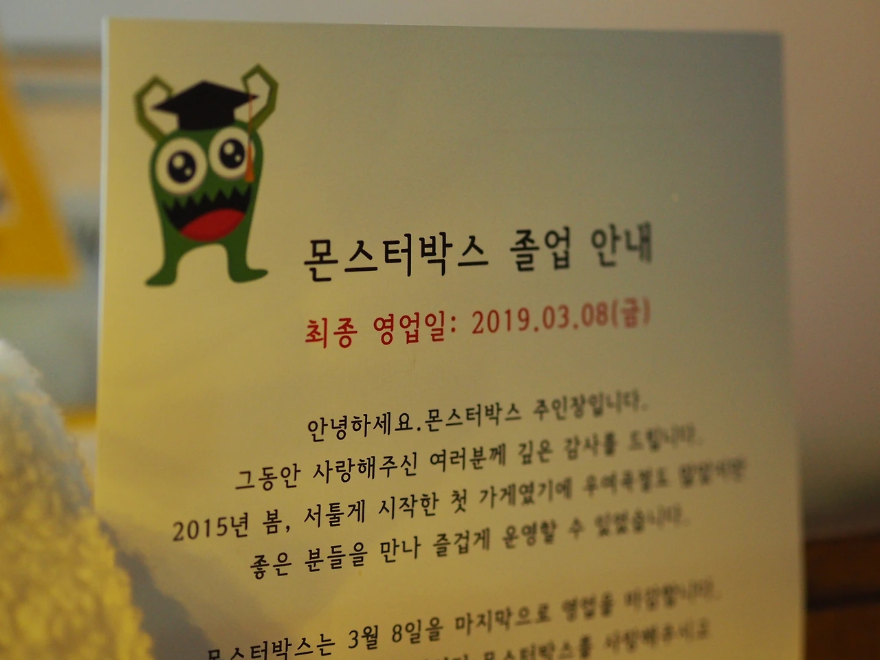 d. 2015.05-2019.03 오랫동안 애정하던 가게, 몬스터박스를 떠나보내며.