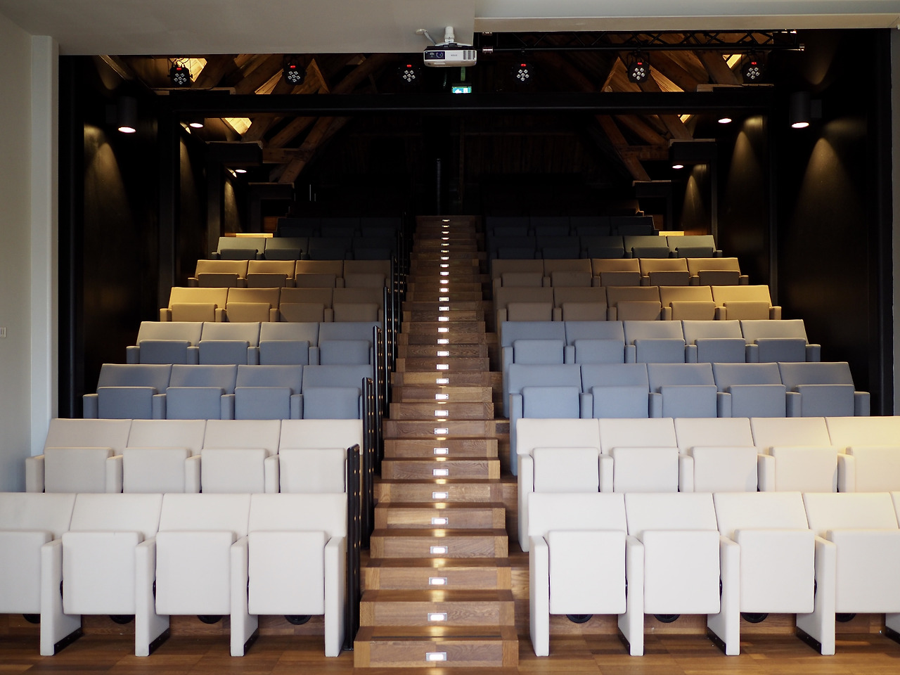 카페와 연결된 커다란 강당은 계단식 좌석이 놓여 있고, 맞은편 커다란 창에서는 항구를 조망할 수 있다. 좌석은 아래에서부터 위까지 그라데이션으로 배색되어 있어 올라갈수록 색이 어두워진다. 좌석에 앉은 사람의 수가 적어도 앞에 모여 앉으면 뒤쪽 좌석이 어두워서 잘 보이지 않기 때문에 자리가 가득 차 보인다는 것이다. 인테리어 디자이너의 세심함이 느껴지는 부분이다. 강당에서는 강연이나 요가 교실, 영화 감상회, 심지어 결혼식까지 열린다고 한다. 좌석 위쪽은 사무실로 통해 있는데, 신부가 사무실에서 나와 계단을 내려와서 입장하기도 한단다.