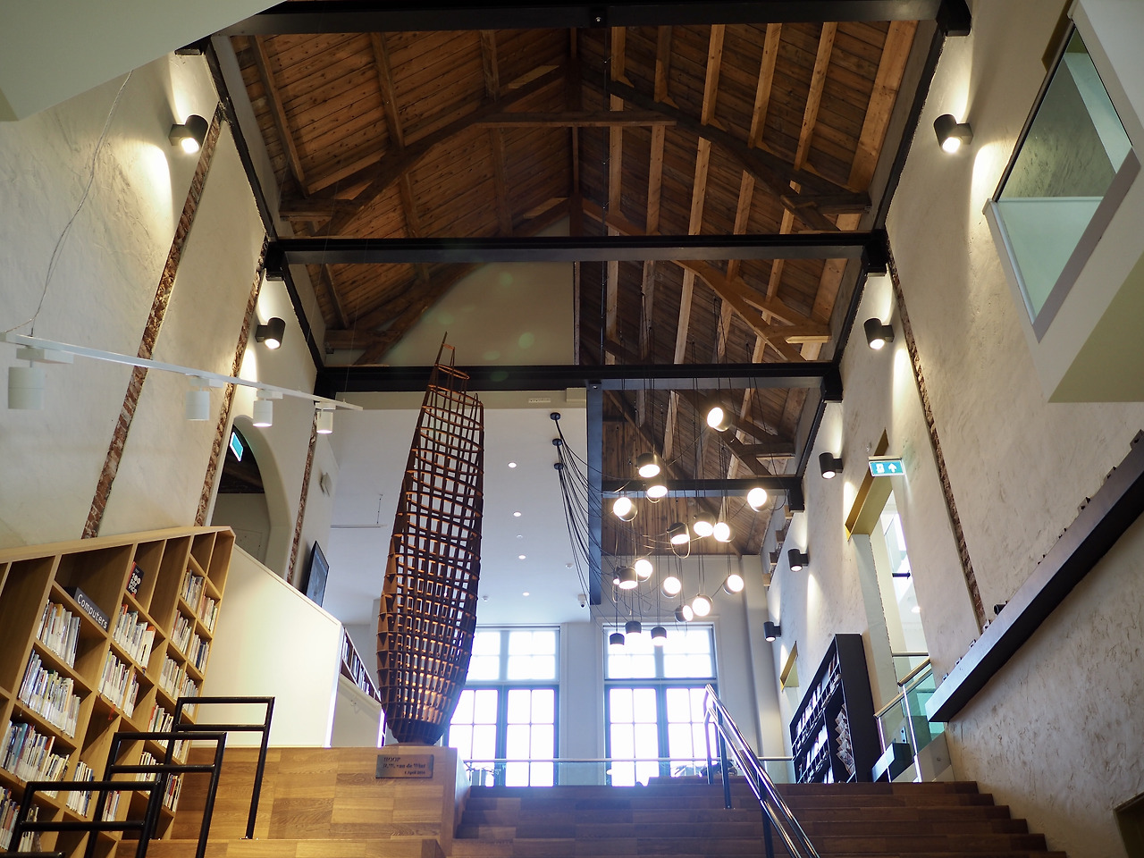 아니타는 도서관의 이곳 저곳을 데리고 다니며 공간과 역사에 대해 소개해주었다. 2차 세계대전으로 덴 헬더는 도시의 대부분이 파괴되었고, 옛 학교 건물은 얼마 남지 않은 역사적인 건물 중 하나였다. 학교가 폐교되고 나서 예술가들이 무단으로 들어와 작업실로 쓰다가 건물이 너무 낡아 떠나고, 몇 년 동안 빈 건물인 상태였다. 건물을 도서관으로 개조하고자 하니 유적을 보존하기 위해 많은 반대가 있었다고 한다.