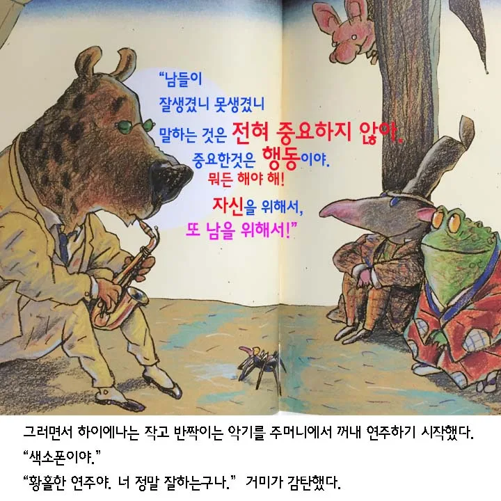 정말, 하이에나가 그렇게 멋진 연주를 하자 다른 친구들은 점점 하이에나가 좋아졌다.
