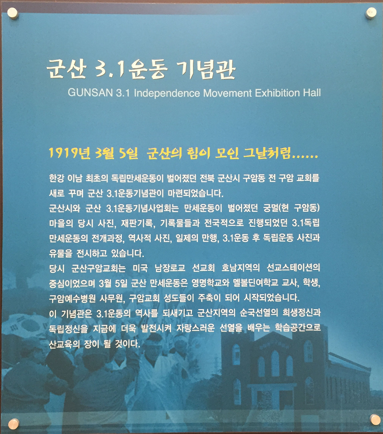 1919년 3월 5일의 군산 만세운동에 대해 내가 기억하는 것은 국사책의 한 줄이었던 것 같다. 작은 박물관을 돌아보는 동안 내가 국사 시간에 외웠던 '1919.3.5 군산 만세운동'은 그 시간을 함께 한 사람들을 알게 되면서 더 이상 더 이상 한 줄 역사가 아니게 되었다. 작은 도시 군산과 그들의 상처를 돌보고 치유했고, 학교를 세우고 가르침을 통해 우리를 섬겼던 선교사들이 그 역사의 뒤에 이름 없이 묵묵히 남아있는 것도 보았다.