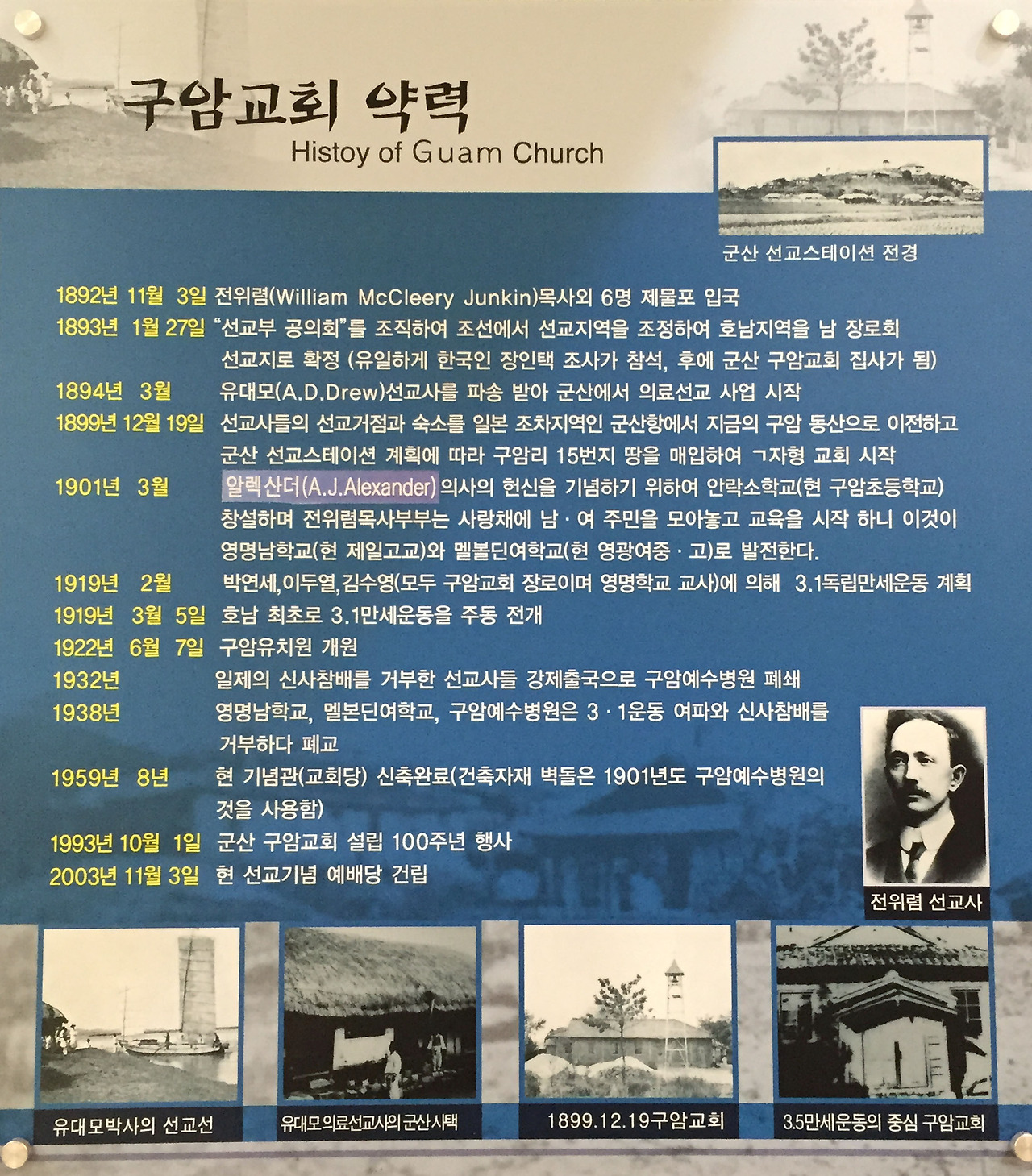 근대역사박물관에서 낯익은 전킨 선교사의 이름을 발견했다. "전킨((William M. Junkin, 전위렴)"선교사가 군산에 세운 영명학교와 멜볼딘 여학교의 옛 사진도 보았다.