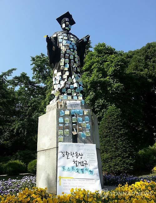 2015년에도 이화여대에 있는 김활란의 동상에 포스트 잇을 붙이는 플래시몹이 있었다.