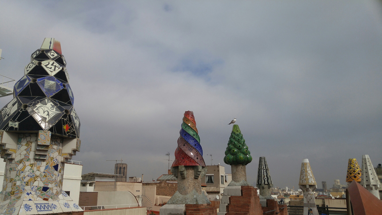 거리 베란다마다 걸려있는 노란 리본들을 바라보며 남쪽으로 향했다. 그 길목에, 그러니까 람블라스 거리 옆에 구엘 저택(palau Guell)에 들렀다. 바르셀로나의 유명 관광지 구엘 공원(parc de Guell)에서 언급되는 부호 구엘이 살던 집이라고 한다. 저택 내의 큰 파이프오르간과 옥상에서 볼 수 있는 모자이크 된 탑(내지는 굴뚝)들이 눈에 들어온다. 그 후 가우디-메이드 건축물에서는 질리도록 찾아볼 수 있었지만.
