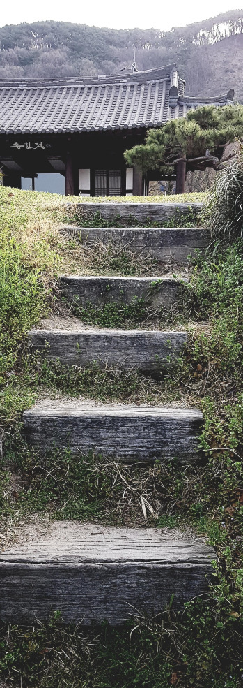 오래된 한옥 정자 마당 앞에서 찻잔들고 오락가락하는, 나 자신도