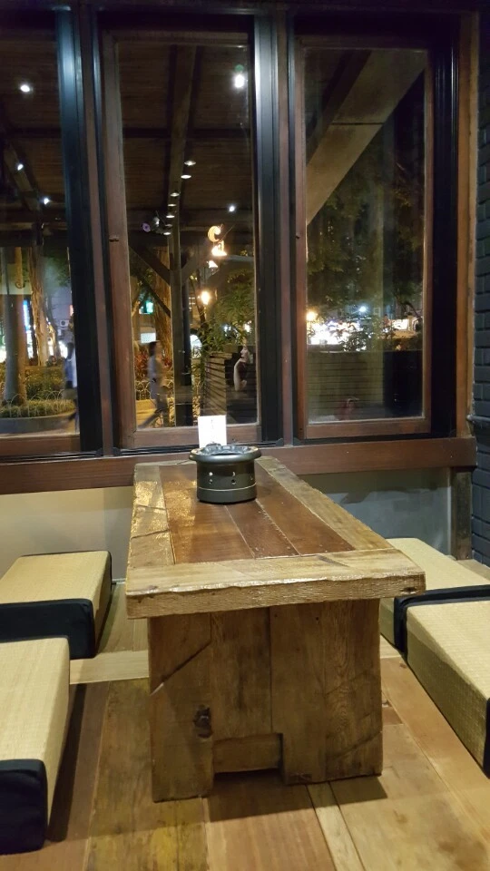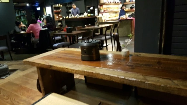 'HUILIU'라고 쓰여있는 간판에 좌식테이블과 입식테이블이 함께 있는 곳이었다. 지하에는 다기를 전시하는 공간이 있는 걸로 보아 복합 문화공간처럼 보였다. 고재로 된 테이블의 전통과 철재로 마감한 입식 플로어의 모던함이 우리 공간과 아주 닮았다. 이곳은 차가 어떻게 나올까 궁금하고 기대되었다