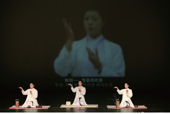 세 다인이 차를 우리는 퍼포먼스 공연을 했다. 배경음악도 좋았고 우리 시는 분의 동작도