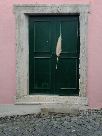 몸 색깔 같은 진녹색 문 , 문에 걸친 마법의 깃털. 저 깃털에 홀려