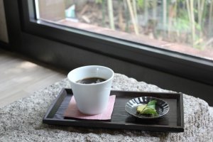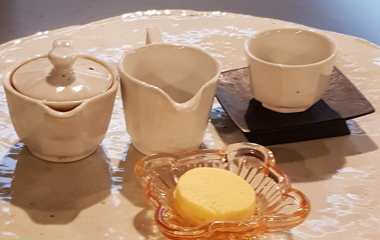 히가시아에서 마셨던 찻잔과 다식.사진이다.