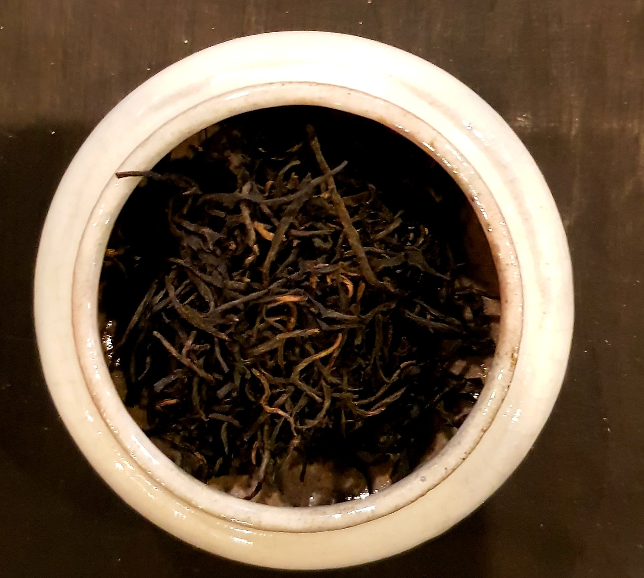 독특한 소나무연기 향 이 배인 까만색의 발효차 ,,
