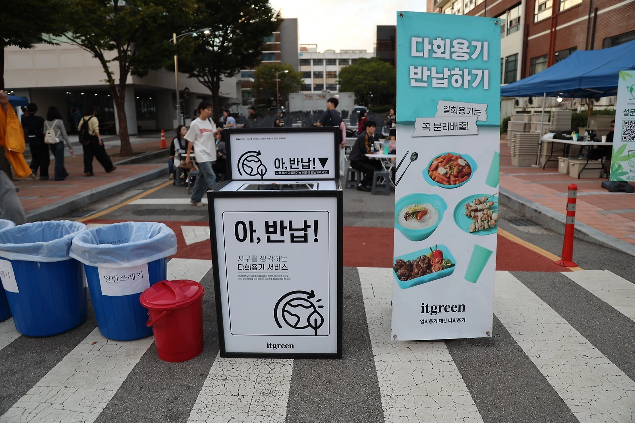‘아, 반납!’ 지구를 생각하는 다회용기 반납소. 축제의 즐거움 속에서도 환경을 지키려는 노력이 돋보였다.