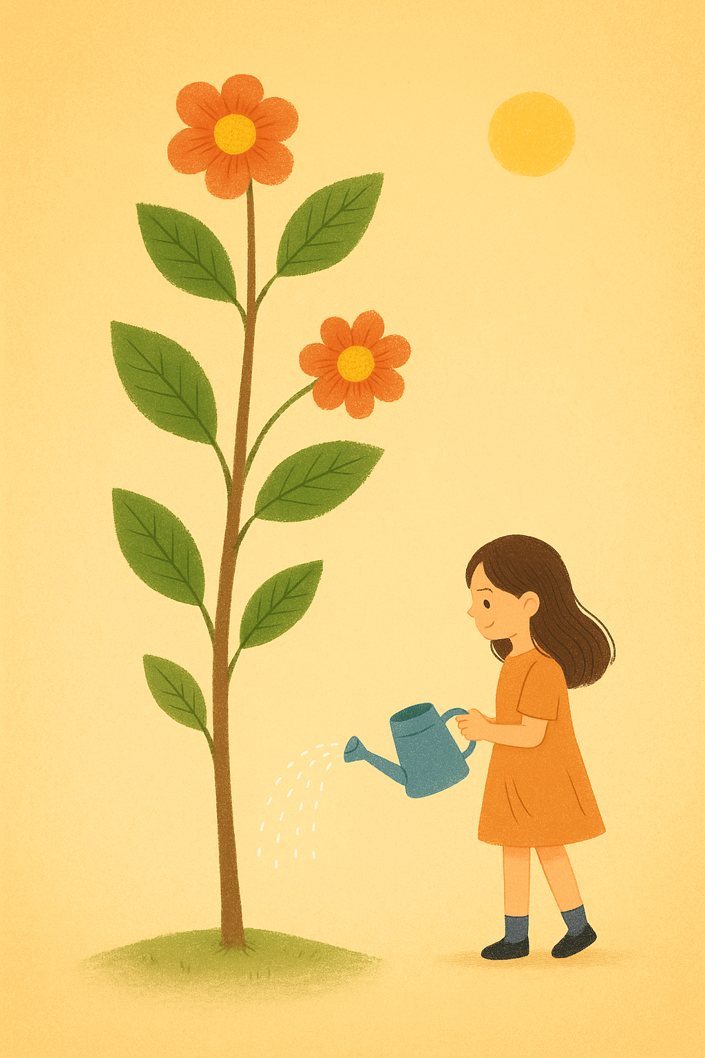 "따뜻한 햇살 아래, 다시 피어나는 나. 상처 위로 새싹이 자라듯, 나는 오늘도 조금씩 단단해지고 있다. 끝이라고 생각했던 자리에서 새로움은 이렇게 자라난다."