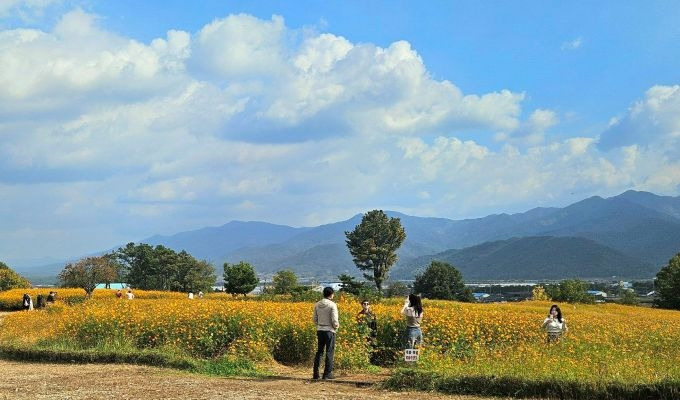 가을이 내려앉은 들판 위로, 꽃보다 사람들의 마음이 먼저 피어나는 순간.
