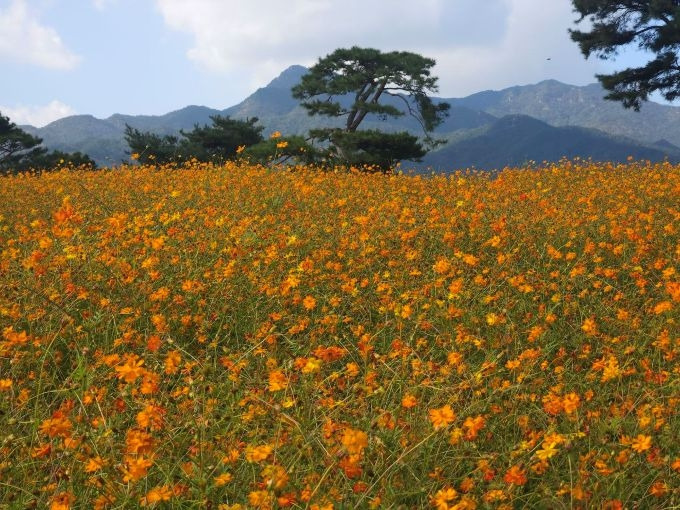 3만 평의 대지 위로 펼쳐진 황화 코스모스는