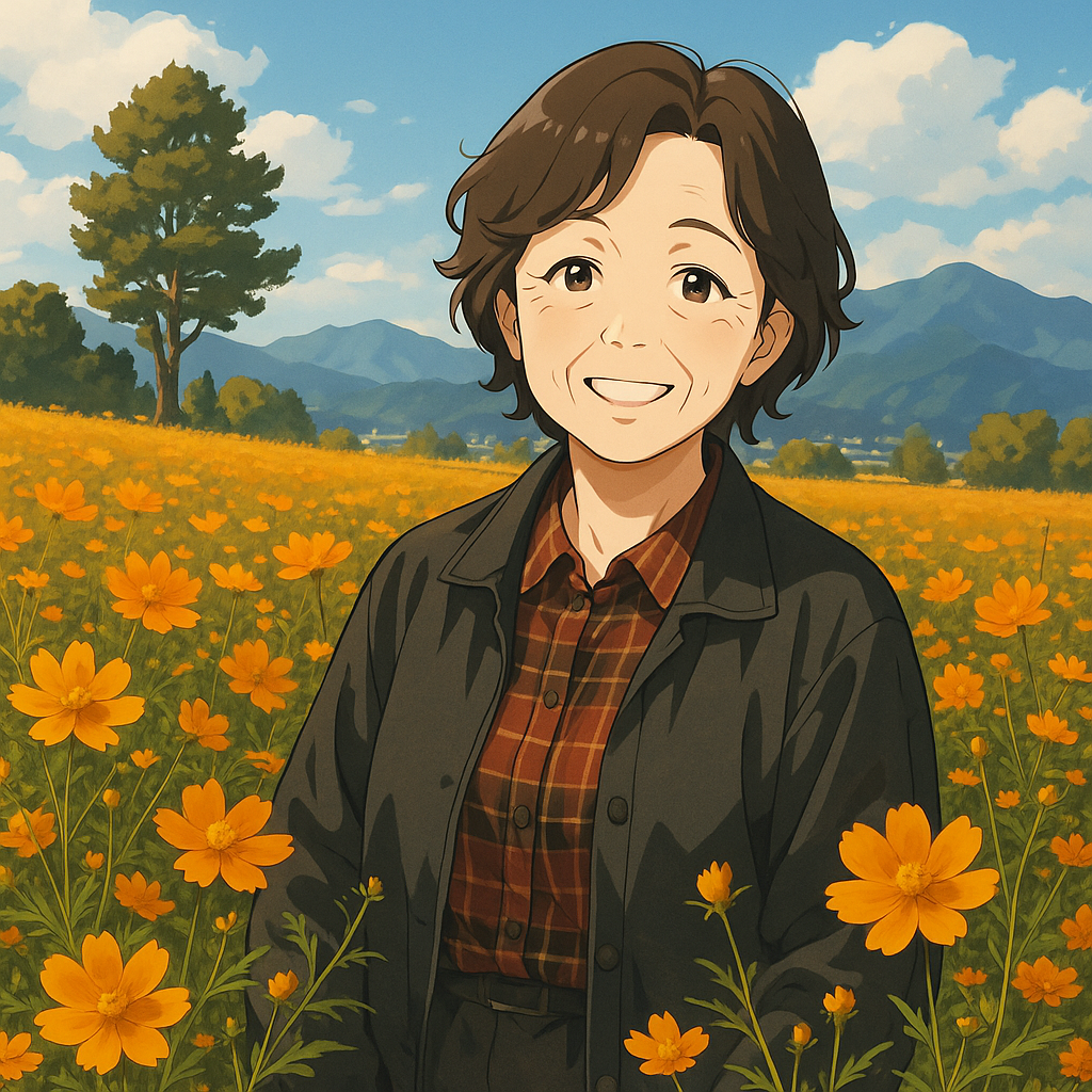 꽃이 흐드러진 들판 한가운데서 엄마의 미소가 가장 먼저 피어났다.