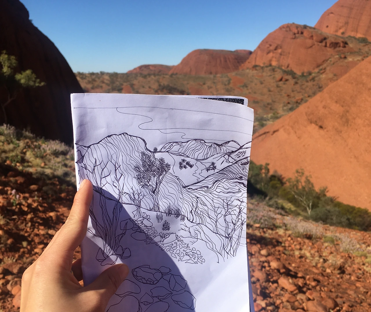 건조한 덩굴들, 간혹 보이는 작은 크기의 나무들, 생명체라고는 가끔 가다 보이는 왈라비, 도마뱀, 파리, 하늘을 날아다니는 새. 그리고 별이 쏟아질 것 같은 아름다운 밤하늘, 땅, 그리고 나뿐인 기분이다. 서호주 퍼스에서부터 시작하여 울루루 근처까지 가던 여정이었다. 당시 우리에게는 울루루 근처 Curtin Springs라는 동네에서 일을 시작하기로 해, 긴 로드트립을 하고 있었다. 우리나라 식으로 따지면 휴게소인데, 숙소가 같이 있는 느낌이랄까. 여기서는 로드하우스 Roadhouse라고 불린다. 이후 우리는 여기서 피와 같은 진실을 알게 되어 힘들었지만, 처음으로 거대한 자연 앞에 서는 경험을 할 수 있었다.