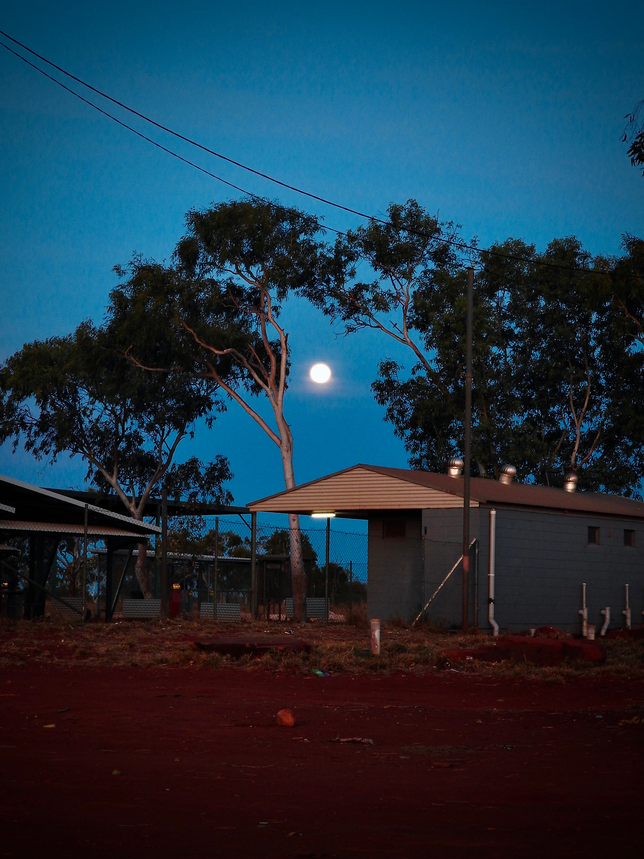 도착한 지 얼마 안 되어서 달 월식이 있을 거라는 이야기를 들었다. 아무것도 없는 아웃백이라, 평평한 대지에서 나는 넓고, 깊은 하늘을 볼 수 있다. 일을 마친 후, 저녁 해가 집에 들어가는 모습을 지켜보았다. 동시에 내 등 뒤로는 달이 높게 떠올라 있었다. 아무것도 없어도 하늘이 한가득이다.