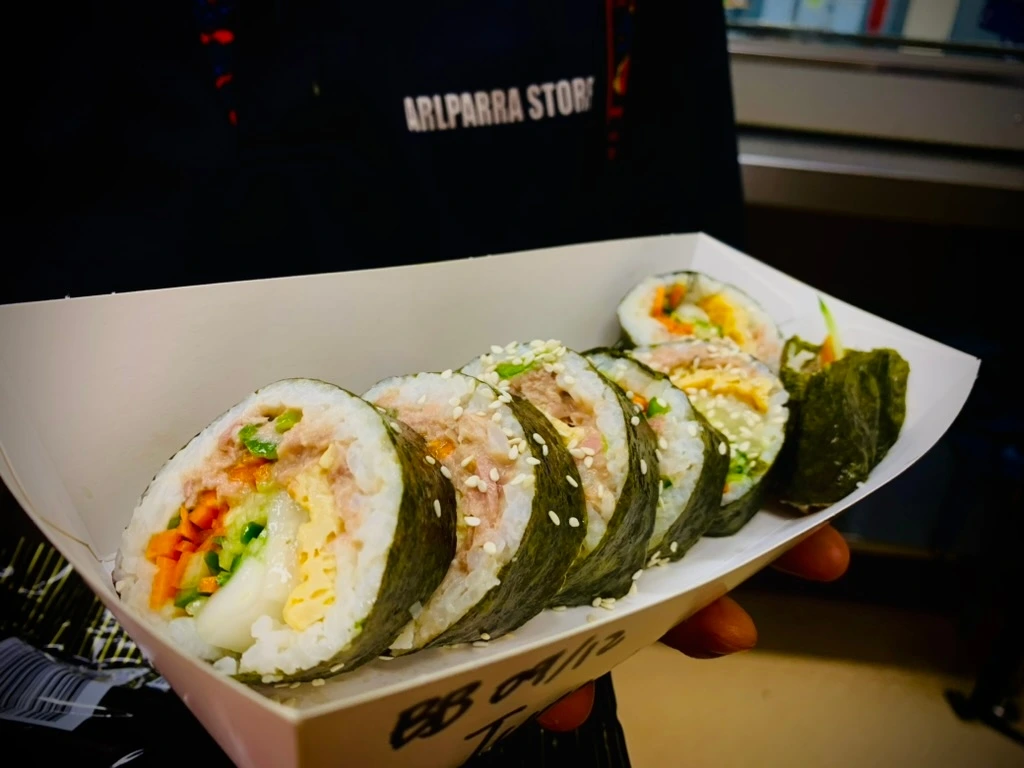김밥의 근원을 따지고 보면 일본의 영향은 맞는 거 같은데, 한국의 김밥은 ‘sushi’라고 불리기에는 김밥적인 특색이 강하다. 호주는 번잡한 도시가 아니더라도 스시 테이크어웨이 집을 찾아보기 쉽다. 우리가 알고 있는 회전초밥집 스시집도 있지만 가장 흔하게 보는 것은 김밥처럼 말이를 반토막 정도의 크기로 파는 롤이다. 종류도 참 다양한 편이다. 해산물에서 치킨과 튀긴 음식들까지. 여행하다가 갑자기’ 밥’이 그리울 때가 있다. 그럴 때, 간편하게 스시집을 찾아 몇 가지 롤을 사 먹어, 밥에 대한 욕구를 해소한 적이 많다. 간단하면서 먹고 나서도 무겁지 않은 느낌이 든다.