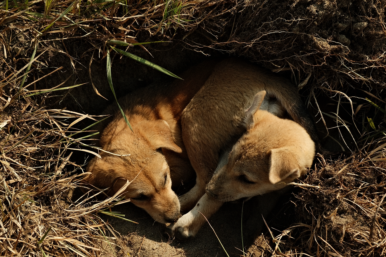 룸비니에서 머물던 숙소 근처에 4마리의 강아지 새 생명들을 만났다. 한 달 남짓 되어서일까, 어미개는 그들과 항시 함께 있지는 않고, 가끔 모유를 주러 찾아온다. 그들 주위로는 남성 성견들이 친구처럼, 보호자처럼 그들을 돌봐주는 것 같았다. 그럼에도 그렇게 아직 아기 같은 이들은 숙소 앞 넓은 들밭에서 꼬물대며 잠을 자고, 먹이를 구하러 다닌다. 이제 막 자립을 해야 하는 시기를 보는 것 같았다. 첫날부터 애착이 많이 가서, 가끔 쓰다듬고, 놀고, 간식을 주기도 하였다.
