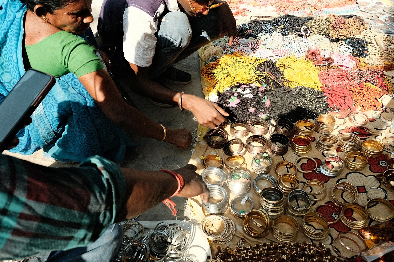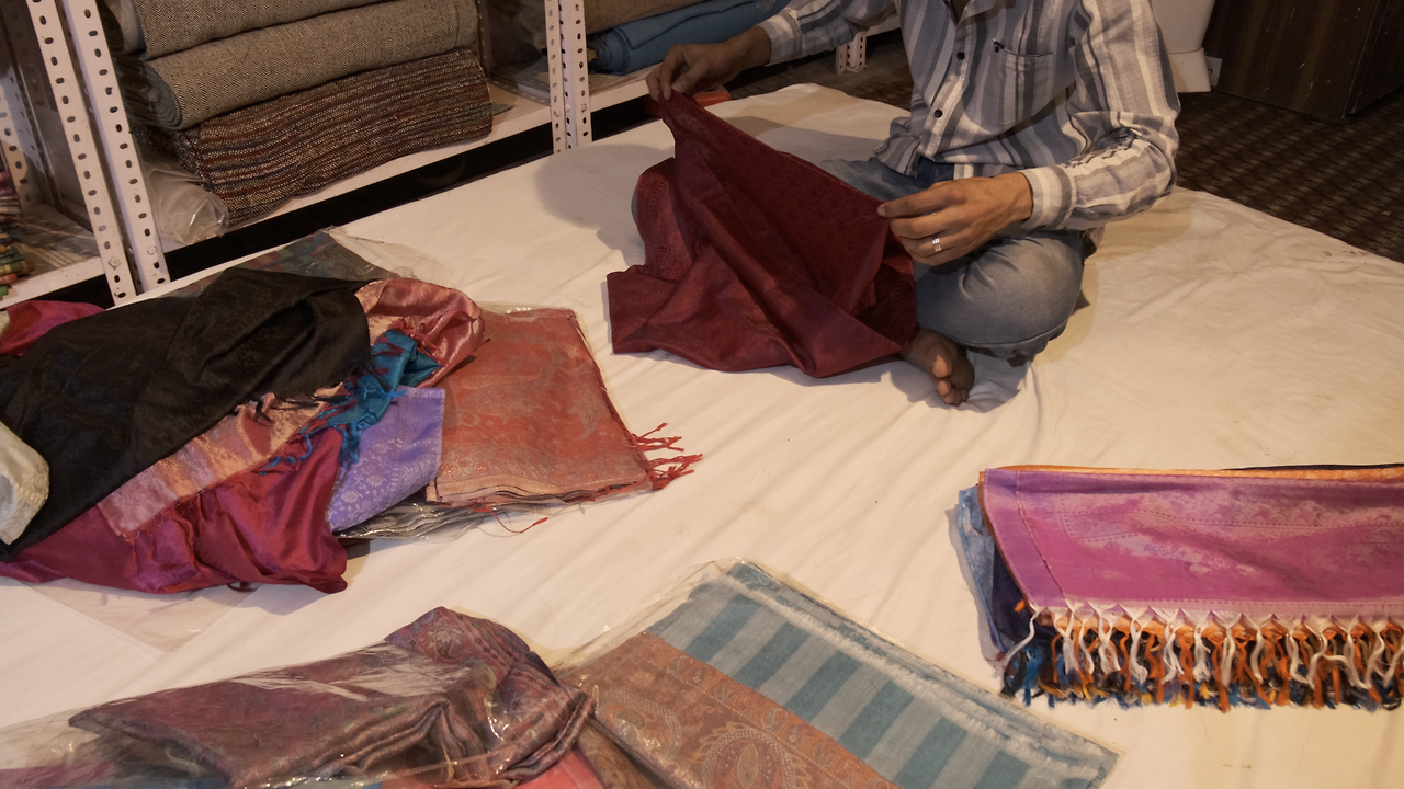 둘째 날이었을까, 사진을 찍는 우리를 보며 누군가 따라붙으며, 너네들처럼 포토그래퍼, 다큐멘터리 제작하는 사람들에게 사진 찍기 좋은 스카프가 있다며 우리를 불러 세웠고, 사기 같은 느낌이 있는 것 같으면서도 마치 헨젤과 그레텔처럼 빵 부스러기를 따라가는 기분이 들었다. 이들은 카스트제에 의하여 분명 가족 단위로 사업을 해왔을 테고, 그들에게 분명 전달되는 장사의 노하우가 있을 것이다. 그리고 그중 하나는, 사람들을 관찰하는 능력이 아닐까 싶다. 그가 본 대로 우리는 카메라를 가지고 있고, 사진을 찍고 있었다. 그리고 그런 우리에게 유혹적인 말 중에 하나는 사진 찍기 좋을 거라는 말이다. 도착한 가게에 그의 아버지는 우리를 마중하였고, 우리에게 여행의 계획 등 간단한 것들을 묻더니 본론으로 들어가, 모두 수공예라며 비싼 값을 불렀다. 나와 장에게는 진짜를 알아볼 수 있는 능력이 없었기 때문에, 어느 것도 믿을 수 없었고, 계속해서 다양한 디자인을 가지고 나오는 그들을 보며 이제 떠나야 할 때라는 것을 알았다. 사진을 찍으면서 지역주민들과 대화하는 것이 쉬웠던 우리는 이후, 그 값이 터무니없이 비쌌음을 알았다. 결국, 카르마의 이름으로 우리에게 플라스틱을 구분하는 법을 라이터로 직접 붙여가며, 비법을 보여주던 가게 주인으로부터 스카프를 샀다.