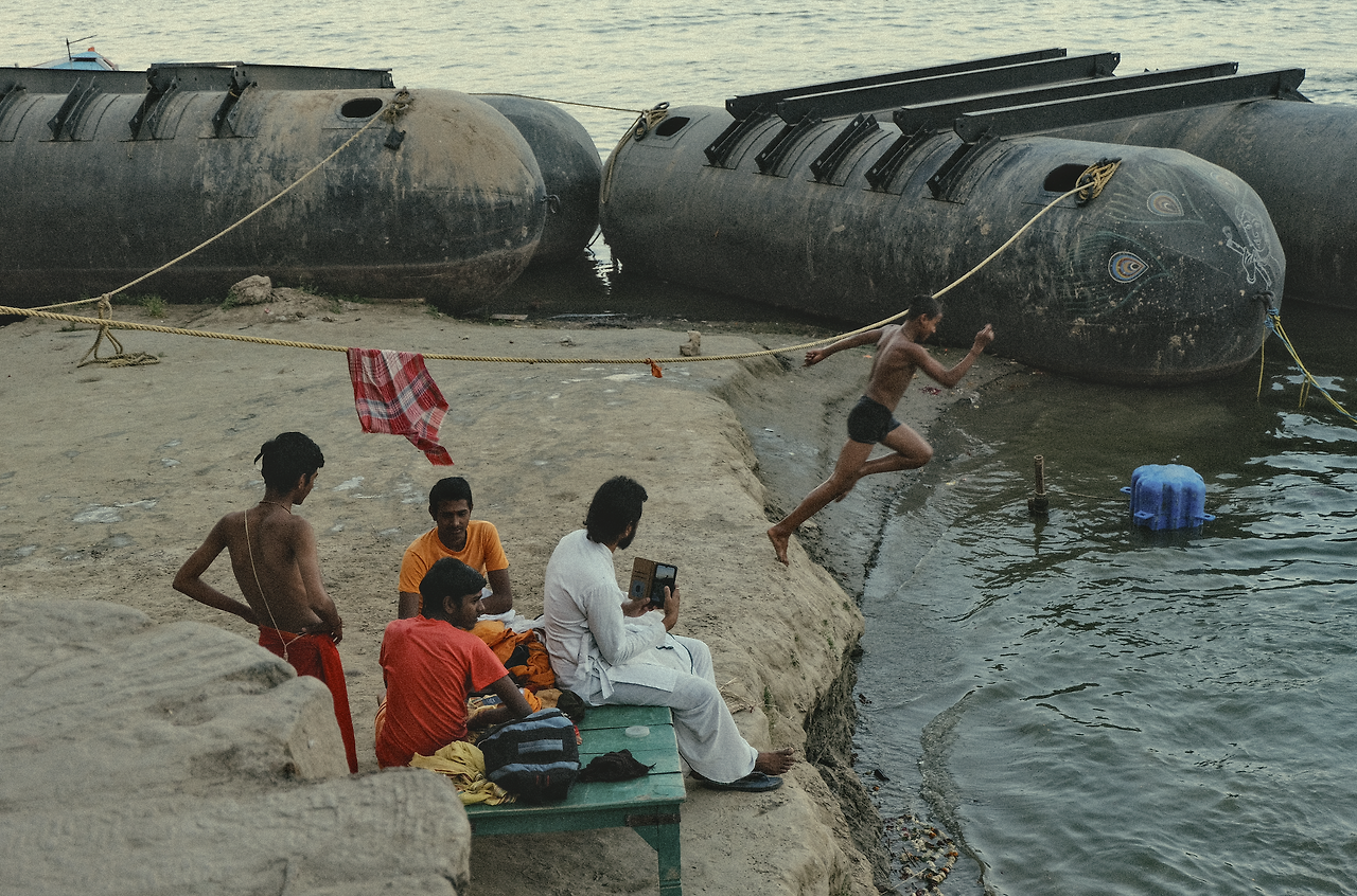 그리고 사람들은 화장터에서 조금 떨어진 이 강가의 물에서 수영을 하며, 시간을 보낸다.