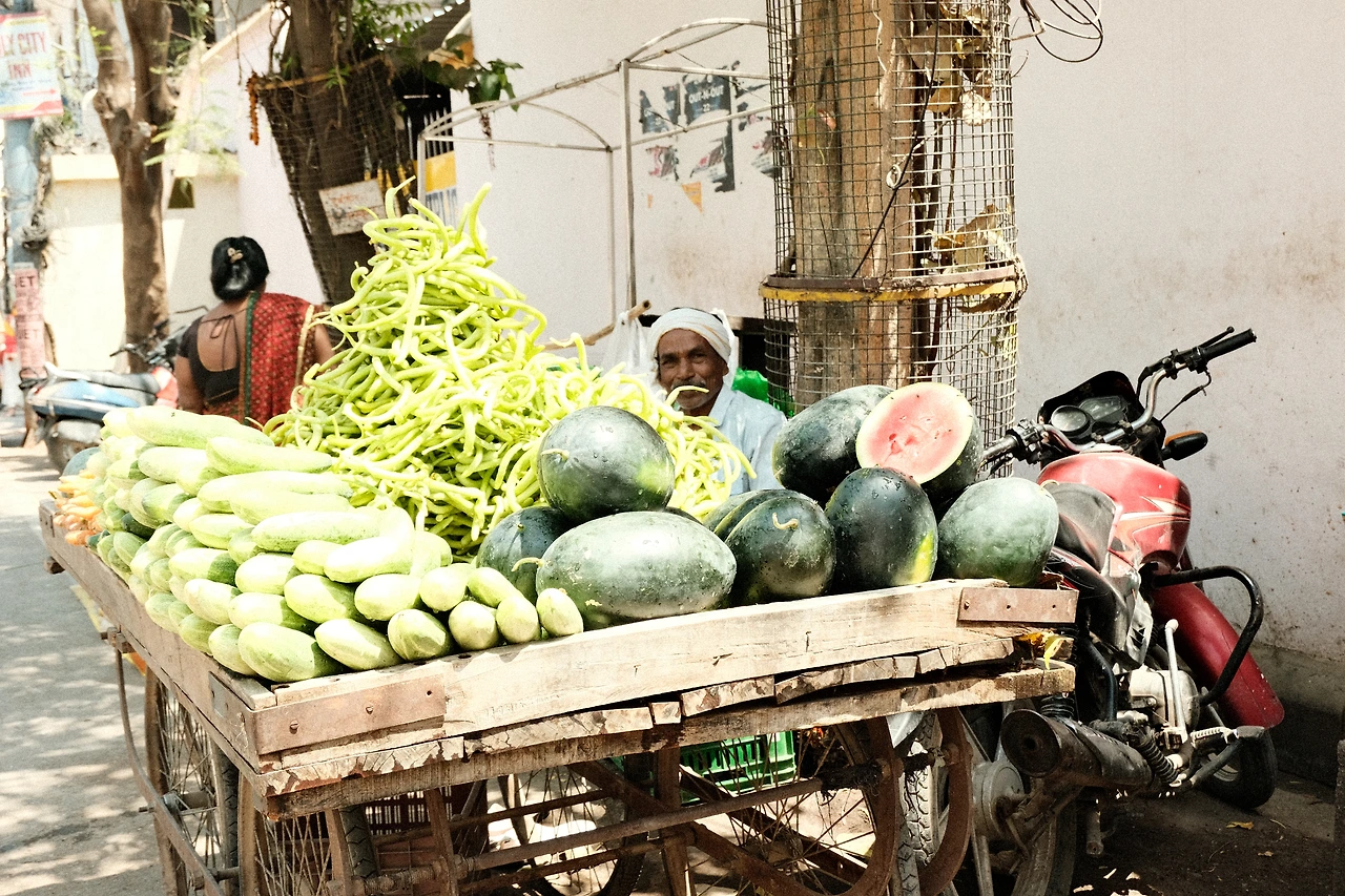 바나나, 파파야, 오렌지, 수박, 멜론, 사과. 색이 나의 눈을 즐겁게 한다. 살아 있음이다. 파파야 철이다. 기운 떨어졌을 때, 먹었던 파파야의 맛을 기억한다. 길에서 종종 오이를 썰어서 파는 사람들을 보았다. 오이는 내 팔 두 덩이는 될 정도의 두께이다. 수분섭취가 필요한 이런 더운 날씨에 물만큼 먹을 수 있는 길거리 간식이다.