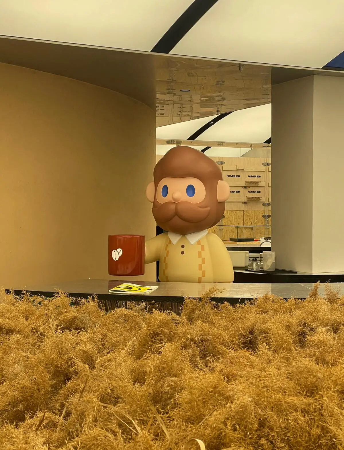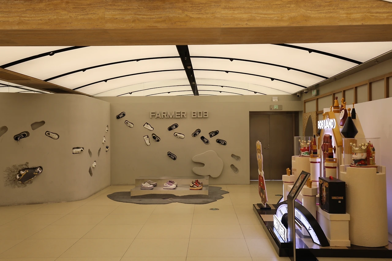 컨셉: '맥전신생(麦田新生, 맥밭에서 다시 태어나다)': 매장 전체는 반 고흐와 모네의 그림에서 영감을 받은, 도심 속 '맥밭'을 테마로 합니다. 입구에는 2층 높이의 거대한 바위가 BOB의 윤곽으로 조각되어 있어 압도적인 시각적 충격을 줍니다.