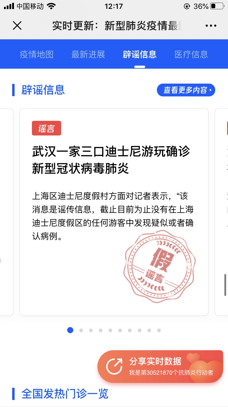 그중 주목할 만한 기능은 가짜 뉴스 공개 서비스입니다. 전염이 확산됨에 따라 늘어나는 루머로 중국 국민들이 공포감이 조성되는 것을 방지하기 위하여, 팩트가 확인된 가짜 뉴스를 확인할 수 있는 서비스를 제공합니다.