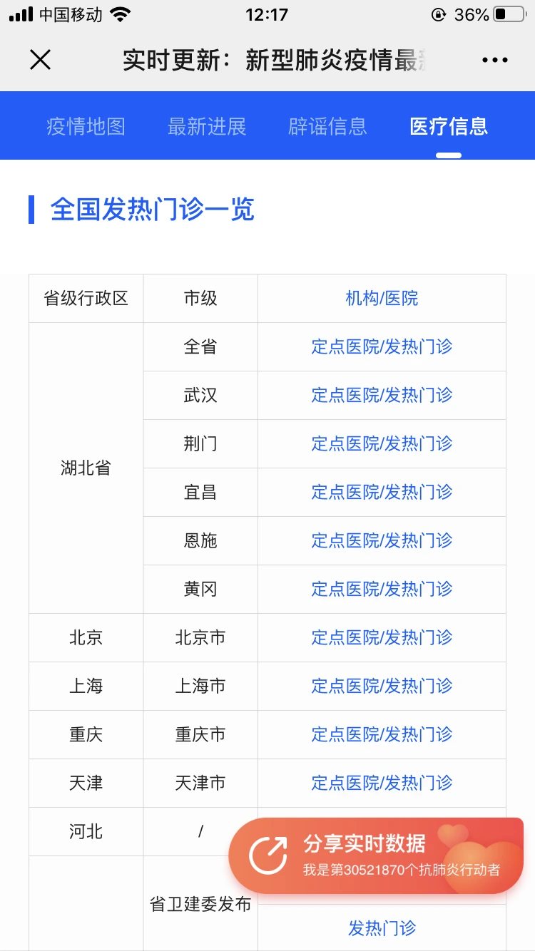 해당 메뉴에서는 중국 국민들이 알고자 하는 신종 코로나와 관련된 모든 정보를 모아 제공하고 있으며 실질적인 모바일 컨트롤 타워 역할을 하고 있습니다.