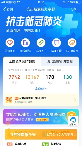 기존 앱 내의 '온라인 클리닉' 서비스는 이 번 사태가 발생하자마자 그 즉시 전염병 상황에 맞추어 정보와 기능적인 측면을 조정하였습니다. 후베이성 사용자를 지원할 수 있도록 전국 의료 전문가 온라인 무료 진료 서비스를 확대하여 발열 등 증상이 있을 시 즉시 의사와 온라인을 통해 실시간 상담을 진행할 수 있습니다. 특별한 증상이 없을 시 온라인 상담 후 앱을 통해 약을 주문할 수 있습니다. 약은 배달 서비스를 통해 진행되며 본 기능으로 인해 병원에서의 교차 감염에 대한 예방률을 높이고 있습니다.
