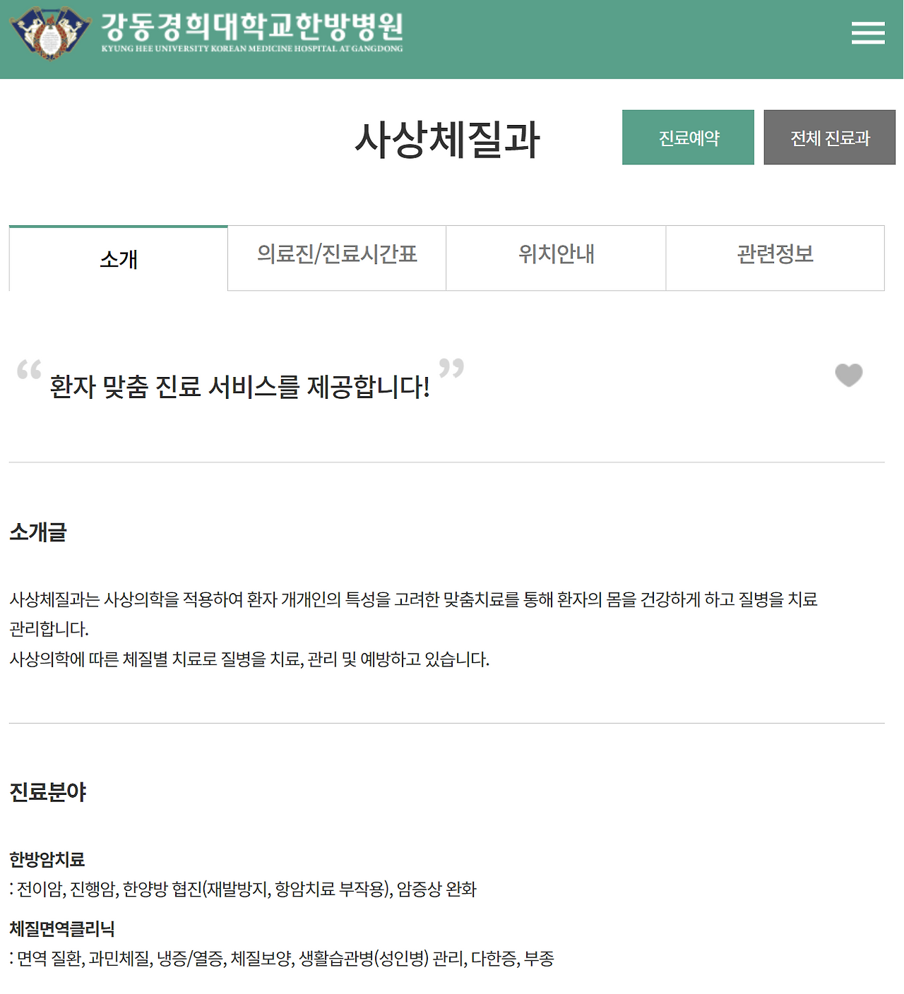 강동경희대학교병원 사상의학과 전문수련의 과정 수료