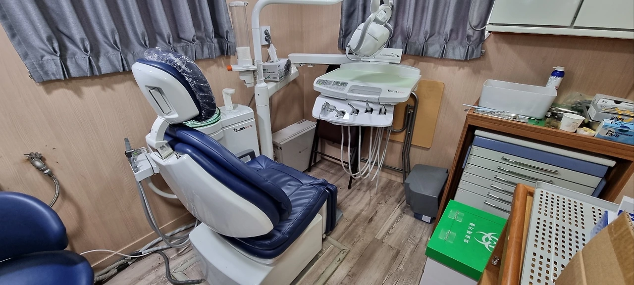다른 선생님들은 어떻게 약 처방을 하고 약을 주는지 궁금하실 수 있는데, 내과 선생님께서는 우선 저와 같이 병원선에서 내려서 진료소에서 진료를 보십니다. 그 후 다시 병원선으로 돌아온 다음에 병원선 내의 약을 짓는 기계로 약을 제조하고 이장님께 전달하여 한 번에 나눠드리는 식으로 약을 제공하고 있어요. 치과 치료의 경우는, 진료소나 마을 회관에 치과 의자가 있지 않다 보니 환자와 같이 병원선으로 돌아와서 치료하고 있습니다.