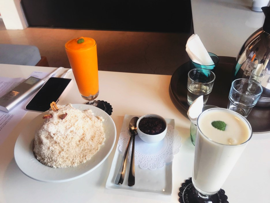 인터뷰 중 제공해주셨던 약다방봄동의 메뉴 - 좌측 상단부터 홍시+정(精)주스, 대보(大補) 빙수, 유자+미(美) 요거트 - 생각보다 너무 맛있어서 놀랐다!