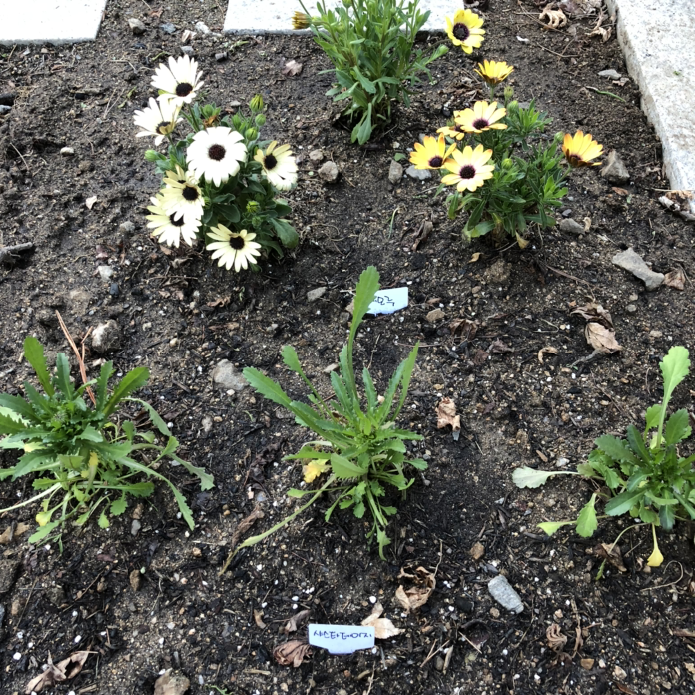 데이지는 참 많이 들어본 이름인데 이렇게 가까이 마주본 적은 또 처음인 것 같아요. 땅에 딱 붙어 있는 작은 아이도 있고 아직 꽃몽우리는 없고 민들레 잎을 닮은 아이도 있고, 국화과 꽃이라는데 봄에도 꽃을 보여주는 기특한 아이네요. 꽃말이 '평화'래요. Peace~! 데모루는 데이지와 성씨도 같고 모양새로 비슷해 보이는데, 아프리카에서 온 아이라 합니다. 국화과도 아니고 꽃말도 '영원한 사랑', 열정이 가득한 꽃입니다.