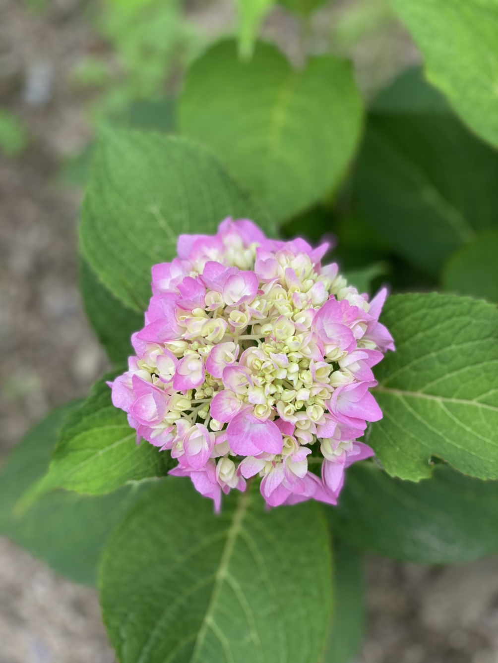 우리 정원에 온 지 삼 년째, 작년까지 얼굴을 내보이지 않던 수국이, 올해 꽃을 피워냈습니다.