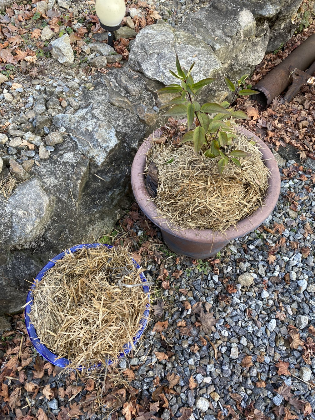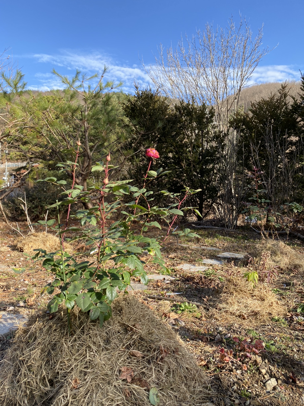 그리고 정원 아이들에게는 가을에 잔디 깎고 한편에 모아둬 잘 마른 잔디를 한 아름 모아 덮어주었어요. 추운 겨울을 잘 견뎌서 내년 봄에도 다시 만나길 기원하며 뿌리애 진동이 닿도록 토닥토닥 두드려 봅니다. 내년 봄을 미리 약속하듯 어렵게 피워낸 장미꽃을 보세요.