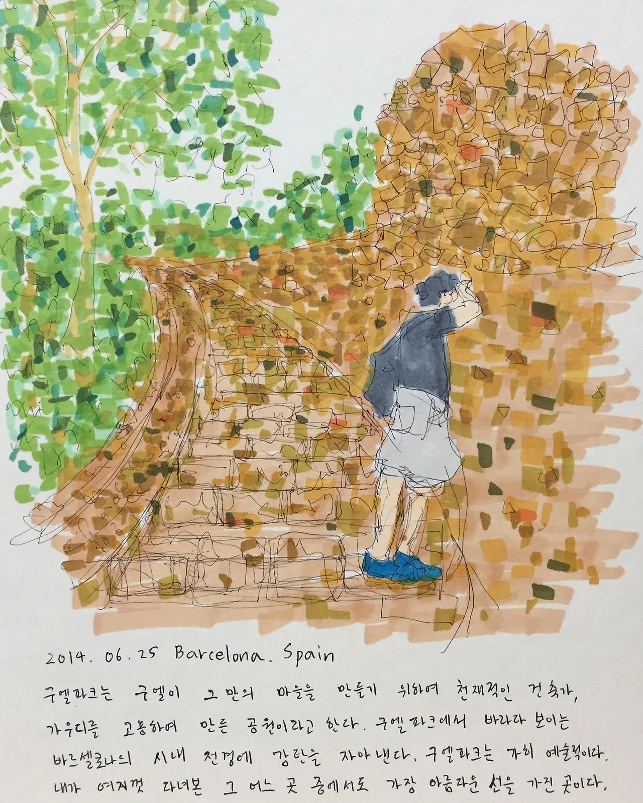 구엘 파크는 구엘이라는 사람이 그 자신만을 위한 마을을 만들기 위하여 천재적인 건축가, 가우디를 고용하여 만든 공원이라고 한다. 구엘 파크에서 바라다 보이는 바르셀로나의 시내 전경에 감탄을 자아낸다. 구엘 파크는 가히 예술적이다. 내가 여태껏 다녀본 그 어느 곳 중에서도 가장 아름다운 선을 가진 곳이다.