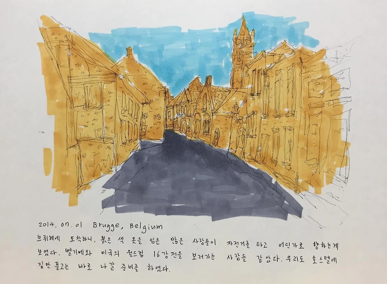 벨기에의 브뤼헤에 도착하니, 붉은색 옷을 입은 많은 사람들이 자전거를 타고 어딘가로 향하는 게 보였다. 벨기에와 미국의 월드컵 16강전을 보러 가는 사람들 같았다. 우리도 호스텔에 짐만 풀고는 바로 나갈 준비를 하였다.