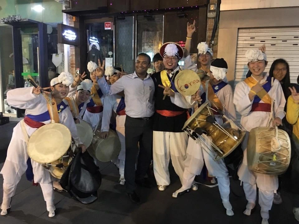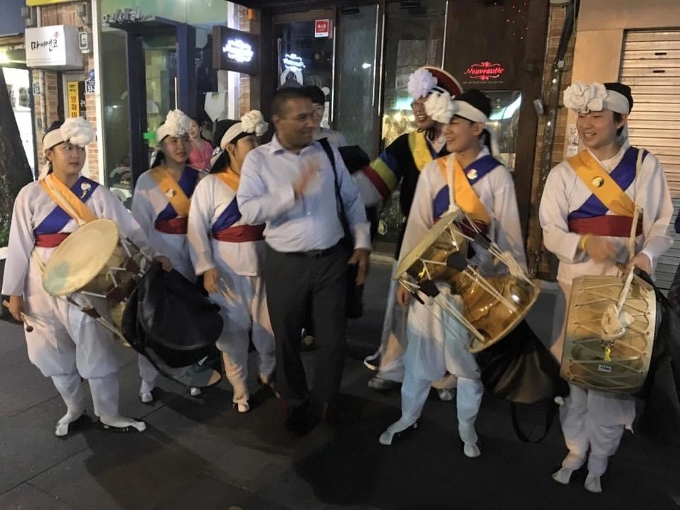 그들의 선반(춤 동작)은, 내가 알고 있는 정읍 우도의 선반과 확실히 달랐다. 그래도 대학교 1학년 때부터, 졸업하기 전까지 동아리 정기 공연만 1년에 3차례씩, 못해도 9번은 뛰었었기에, 백전노장(?!)의 노련함을 보여주고 싶었다. 관객과 논다는 것이 무엇인지 알려주고 싶어, 관객석의 아주머니도 무대 위로 모셔오고, 구경하던 외국인 관광객에게도 슬며시 소고를 쥐어 주었다. (지난 영상을 다시 보니, 판굿을 이끌던 상쇠 친구가 나로 인해 생겨난 변수들로 인해 제법 많이 당황했을 것 같다. 하하하하)