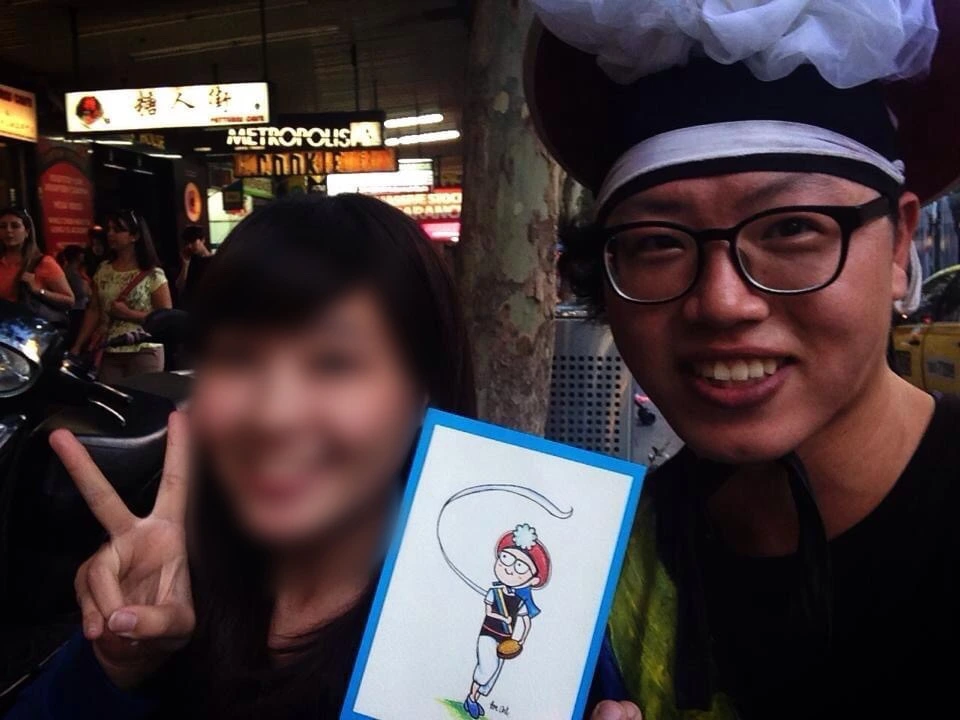 나의 공연 장소 바로 옆 블록에는 대만에서 온 “위니”라는 버스커가 있었다. 그녀는 항상 같은 자리를 지키며, 색연필 일러스트를 그리고 있었다. 나는 버스킹이 있는 날이면 그녀에게 인사를 건네고 그녀의 그림을 구경하곤 하였다. 그녀의 그림을 보고 있으면, 색연필이라는 도구가 이렇게 따뜻한 색을 만들 수도 있다는 사실이 신기하기만 하였다.