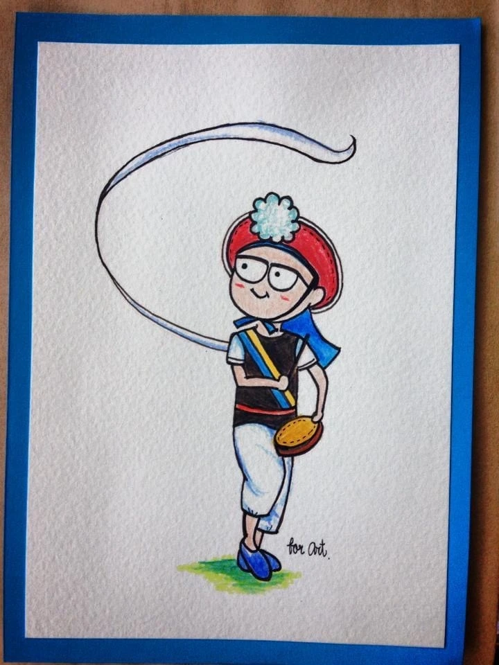 하루는 그녀가 나에게 줄 선물이 있다며, 작은 갈색 봉투 하나를 건네었다. 그리고 그 안에는 놀랍게도 상모를 돌리고 있는 나의 모습이 그려져 있었다. 종이 위의 캐릭터가 너무 귀여워서, 설마 저 캐릭터가 내가 맞을까 싶다가도, 상모를 돌리고 있는 그 모습이 당연히 나일 수밖에 없겠구나 싶었다. 누군가로부터 그림 선물을 받는다는 것이 이렇게 기분 좋은 일인지 몰랐다. 너무나 기분이 좋아, 고맙다는 표현을 어떻게 더 해야 할지 모르고, 땡큐쏘머취, 땡큐쏘머취만 계속 되풀이했던 것 같다.