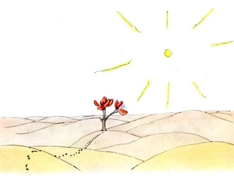 사진가는 카메라를 자신의 얼굴에 바짝 갖다댄 채, 바닥의 꽃을 찍고 있었다. 어린 왕자가 보기에 사진가의 모습은 제법 우스워보였지만, 또한 제법 진지해 보이기도 하였다.
