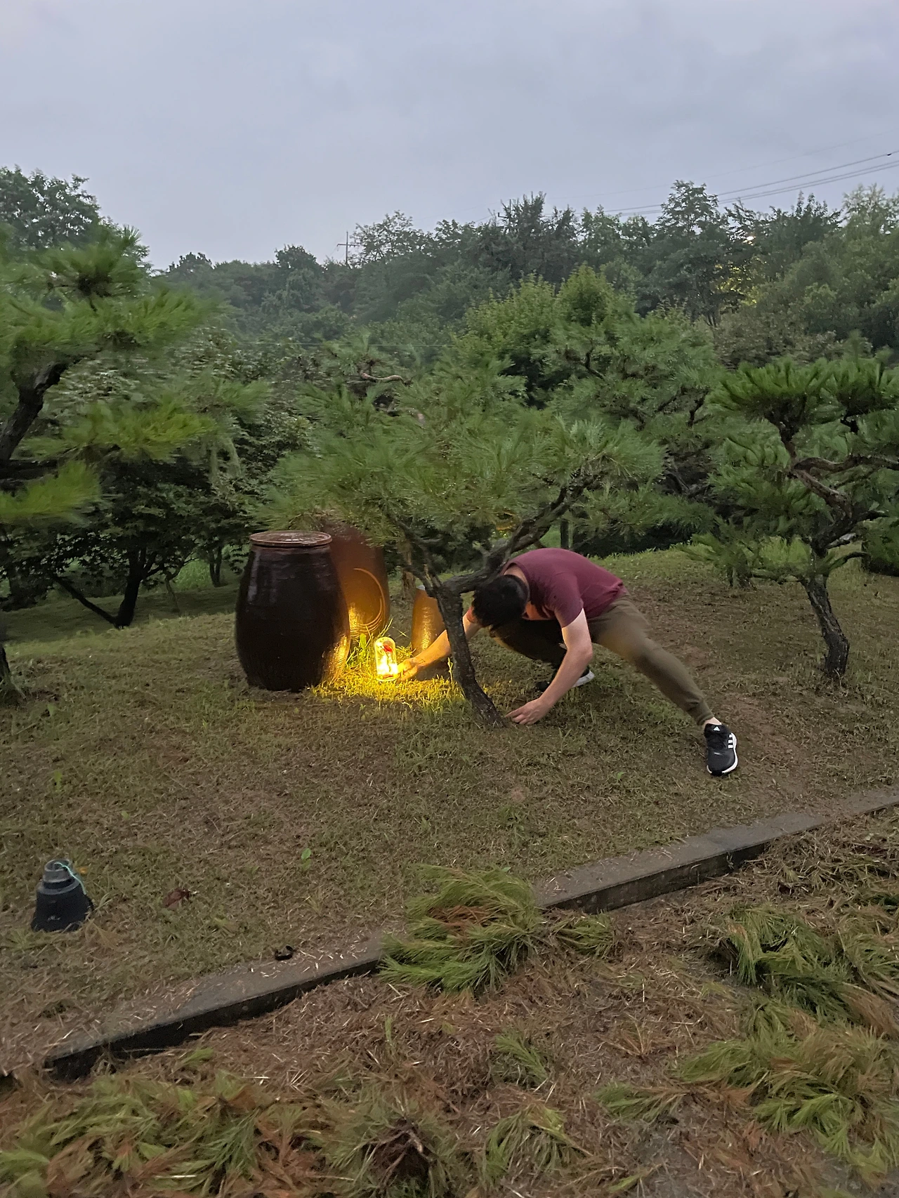 여주의 작업공간을 <초록 공간>이라 이름을 붙인 데에는 두 가지 배경이 있다. 먼저, 이 공간의 앞뜰에는 10년 넘게 곰아부지의 손을 타며 자라온 멋진 소나무들이 있다. 그래서 이 공간에서는 봄, 여름, 가을, 겨울 사계절 모두 초록잎의 싱싱항 나무들을 만날 수 있다. 여름에는 언덕의 위아래로 풀과 나무들의 녹음이 무성해지는데, 그 초록색 자연풍경을 스치는 여름의 산들바람이 제법 상쾌하다. 그야말로 초록초록한 공간이다.