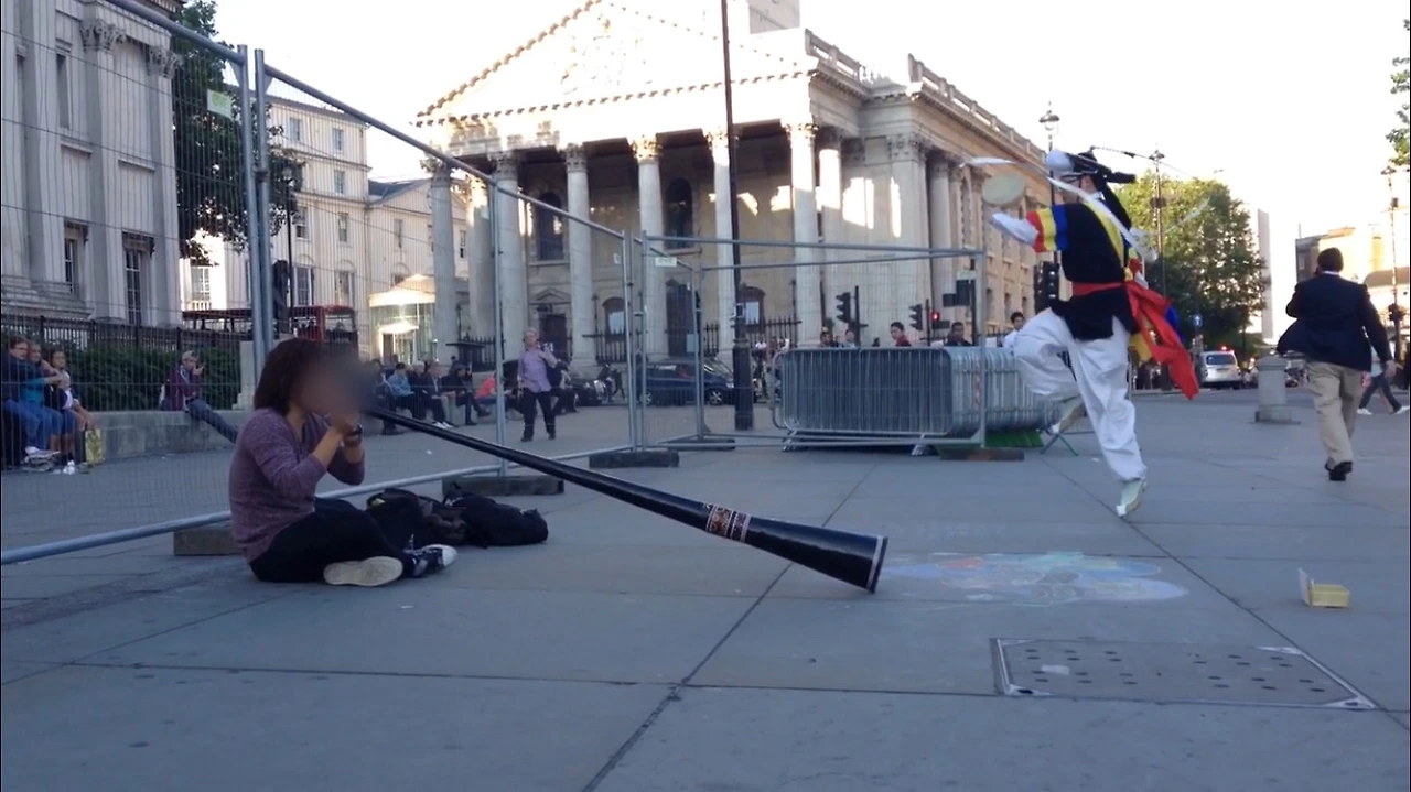나는 숙소에 체크인을 한 후, 버스킹을 함께 하기로 한 관석이를 만나러 런던아이로 갔다. 그리고는 트라팔가 광장에서 관석이의 디저리두 리듬에 맞추어 채상을 돌렸다. 멜버른에서 버스킹을 처음 시작했던 그 날처럼 마음이 설레였다.