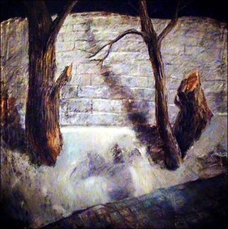 아스팔트로 포장된 통행로에 나무 세 그루가 서 있다. 아스팔트가 없다한들 제 발로 어디를 갈 수 있겠냐마는, 그림 속 나무들은 아스팔트에 의해 꼼짝없이 발이 묶인 셈이다. 제일 왼쪽에 있는 나무는 세 그루의 나무 중에 가장 굵은 기둥을 가졌다. 그러나 그의 가지는 길게 뻗지를 못하고 잘리어 있다. 제일 오른쪽에 있는 나무는 심지어 그 기둥마저 잘려있다. 그나마 그림의 가운데에 있는 나무는 양 옆의 나무들에 비하면 가장 몸이 성한 편이다. 그러나 이 나무 역시 빈약한 두께의 기둥이며, 아래로 쳐진 가지며, 그림 속 다른 나무들만큼이나 생명력이 없어 보이기는 마찬가지다.